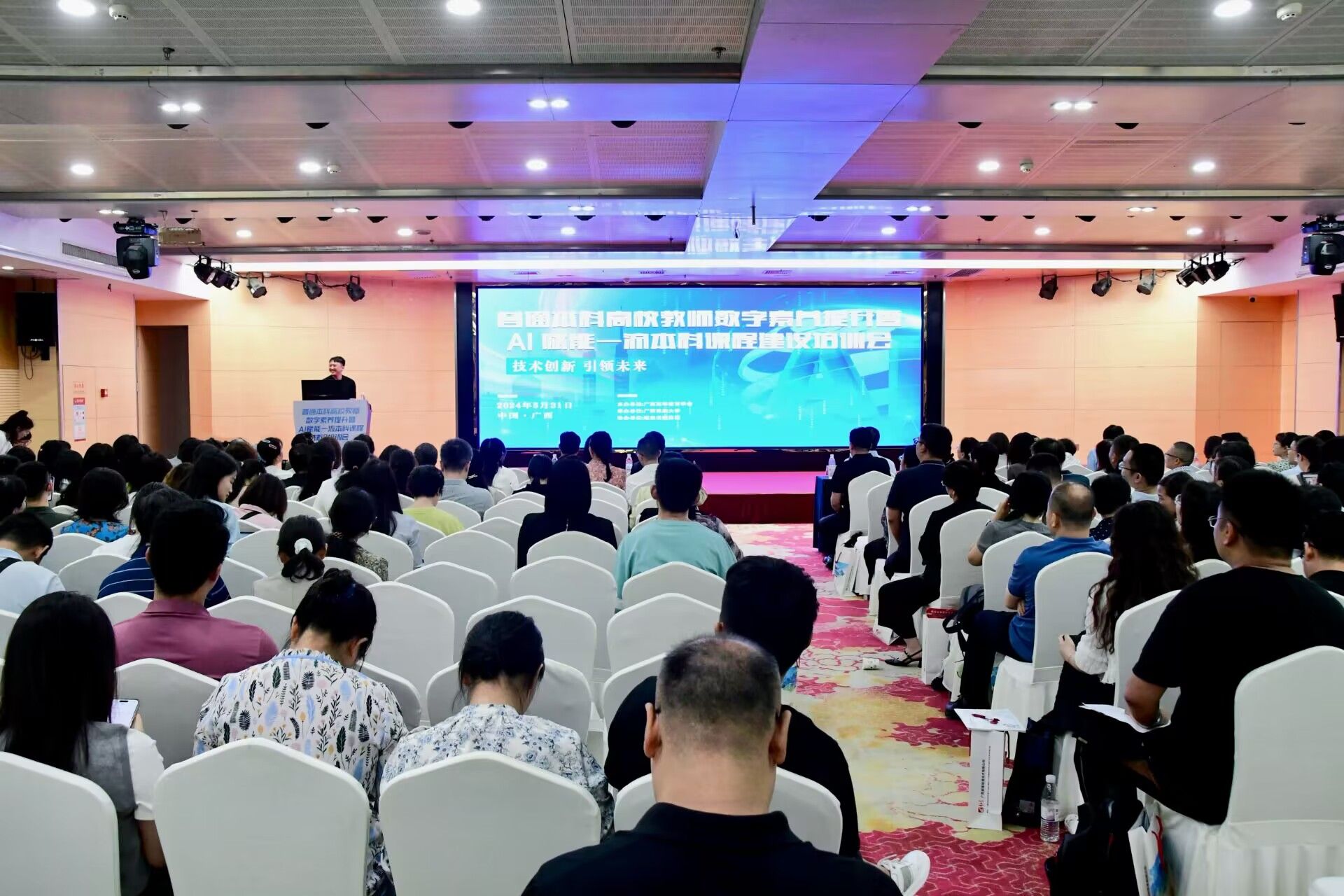 【大学生通讯社报道】5月31日,由广西高等教育学会主办,beat365亚洲体育官方网站承办的普通本科高校教师数字素养提升暨AI赋能一流本科课程建设培训会举行。副校长姜明国,广西高等教育学会副会长王恩界出席会议,有关专家学者及各高校教师与会。