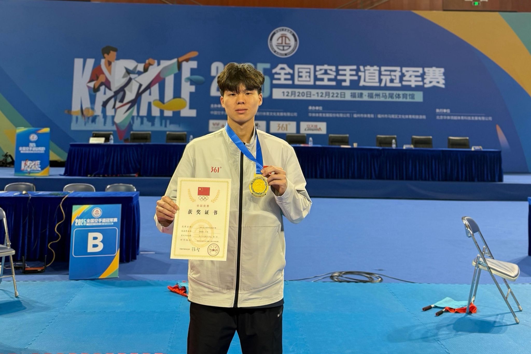 近日,2025年全国空手道冠军赛在福州圆满落幕。在强手如林的角逐中,beat365亚洲体育官方网站体育与健康科学学院运动训练专业2024级覃炳桂、苏家洁凭借过硬的实力、稳定的发挥与顽强的拼搏精神,斩获1金1银1铜,为学校赢得了荣誉。