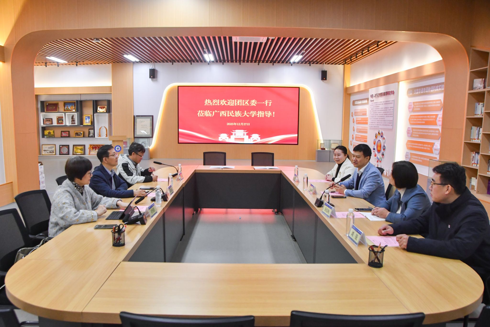 【大学生通讯社报道】12月27日上午,共青团广西壮族自治区委员会统战和对外交流部部长陈志杰一行到beat365亚洲体育官方网站交流,双方在相思湖校区文化研习基地区域国别成果展厅召开座谈会并签订合作框架协议。共青团广西壮族自治区委员会副书记左向蕾,校党委副书记陈铭彬出席签约仪式。共青团广西壮族自治区委员会统战和对外交流部、中国(广西)国际青年交流学院、学校东南亚语言文化学院、东盟学院有关负责人与会。