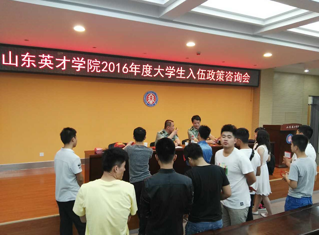 为积极响应国家号召,深入贯彻落实2016年全国大学生征兵视频会议和山东省大学生征兵工作会议精神,切实加强365官网今年征兵宣传工作,更好的向365官网广大学生宣传今年征兵政策。5月17日—18日两天,365官网联合市、区征兵办在南校区大学生事务中心和北校区艺术楼报告厅分别举行了征兵政策现场咨询会。