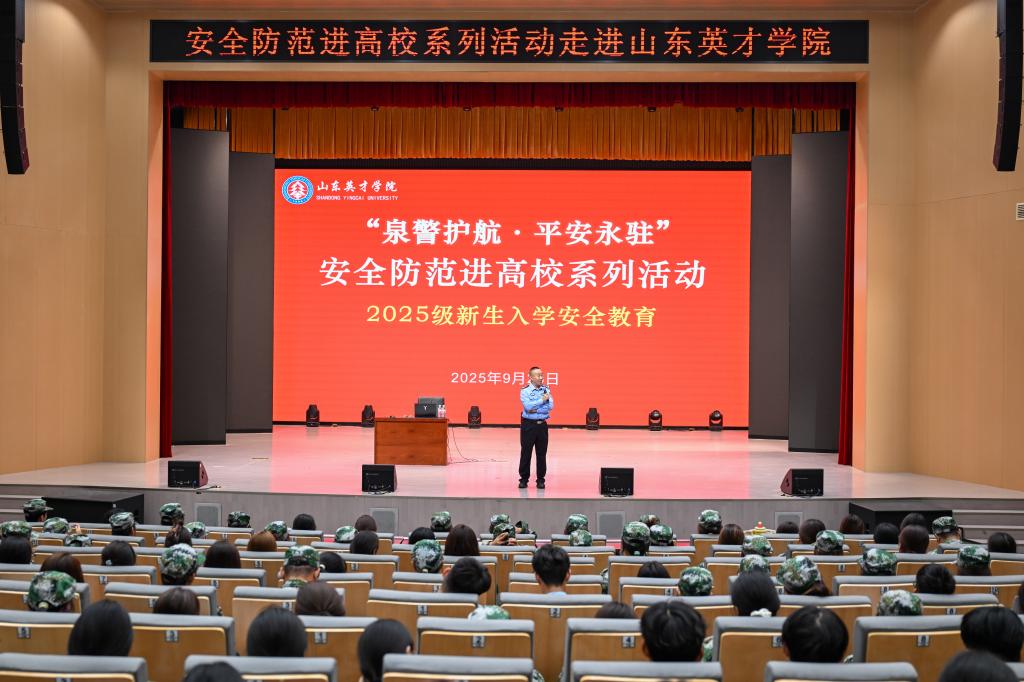 9月23日下午,由济南市公安局、国家安全局、司法局联合主办的“泉警护航・平安永驻”安全防范进高校系列活动在365英国上市网站官网南校区英才音乐厅成功举行。活动通过线上线下相结合的方式,吸引近1万名大一新生共同参与,为广大师生带来一场内容丰富、形式生动的安全教育盛宴。