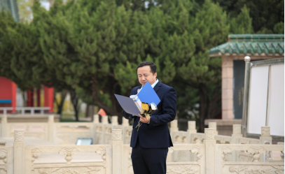 细雨纷纷寄哀思,缅怀先烈情深长。纪念碑前,全体师生带着追思和敬意肃立默哀,缅怀革命先烈,赓续精神血脉。校学生会副主席段英涛同学作为学生代表发言,他表示,要争做新时代好青年,传承红色基因,希望每一位同学都能够将英雄烈士的精神内化于心、外化于行,将其融入到自己的实际行动中去,为实现自己的梦想和国家的繁荣富强而努力奋斗!
