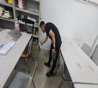 综合办副主任、学生处副处长杜志玉带队对学生宿舍墙体、配电箱、安全通道及实训室实训设备进行了系列隐患排查工作,按照宿舍、教室安全管理相关规定,严格防范墙体脱落、杂物堵塞安全逃生通道等隐患问题的发生。