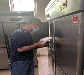 综合办副主任张中凯带领食品安全检查小组来到食堂操作间、食品留样间、原材料储藏间严格查验原材料选购、存储、加工制作、采集留样环节,随后,检查组一行前往校内商业街对菜鸟驿站、超市、水果店、台球室等重点部位进行突击检查,着重审查有无售卖临期、过期产品等违规行为,以细致、严格的工作作风保障师生舌尖上的安全。