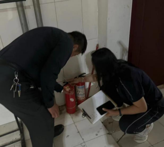 综合办主任高奎带领安保干部重点核查餐厅职工宿舍内电源、插排是否合规达标,消防设备、安全指示标识能否正常使用、地面卫生是否干净整洁、墙角有无堆积杂物现象,旨在从源头上切断火灾隐患。
