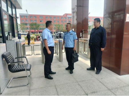 北校区综合办公室高奎主任向检查组详细汇报了校园安全管理和自查情况,马洪大队长对北校区的安全管理及校园安放建设工作给予了充分肯定,并强调在学校安全管理工作中要压实、压紧责任链条,时刻绷紧安全弦,切实将校园安全工作抓细、抓实、抓好,警校通力合作共建平安校园。