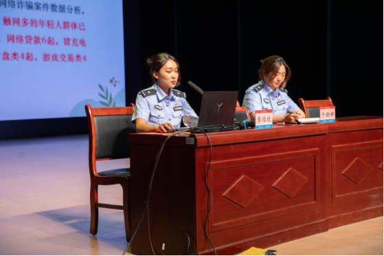 民警李怡欣从网络诈骗常见的手法、危害,实际的案例及如何防止被骗等方面给师生上了一堂精彩的反诈防骗课。他提醒大学生在网购、社交、支付等场景中,要充分注重个人信息的保护,树立健康的金钱观和消费观,努力提升自身网络信息甄别和风险应对能力,守护自身安全进行了宣讲。讲解贴近实际,生动形象的阐明了校园生活中打架斗殴、网瘾、吸烟等不文明现象及其危害。