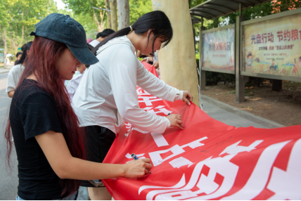 活动现场人声鼎沸,气氛高涨,同学们踊跃在横幅上签下自己的名字,积极响应节水倡议,共同承诺将从身边小事做起,践行节水使命,将宣传口号落到实处。
