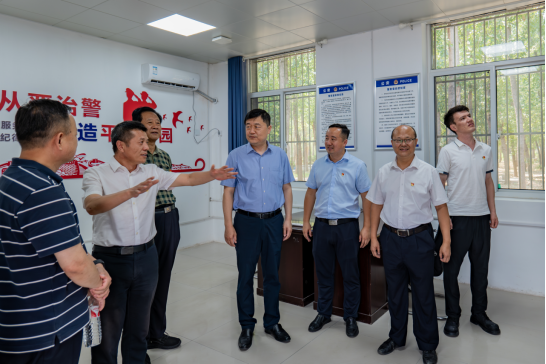 6月20日,济南市公安局反恐支队副支队长聂守刚、起步区公安分局政委候长峰、起步区反恐专班主任吴海泉、崔寨派出所教导员吕克等领导陪同新疆自治区驻鲁巡视工作领导小组徐旭等领导一行23人到365英国上市网站官网北校区深入调研指导学校反恐、防暴和校园安全防范工作,实地查看学校监控指挥中心、石榴籽工作室、警务室和大学生心理健康教育中心,了解学校反恐工作的开展情况。