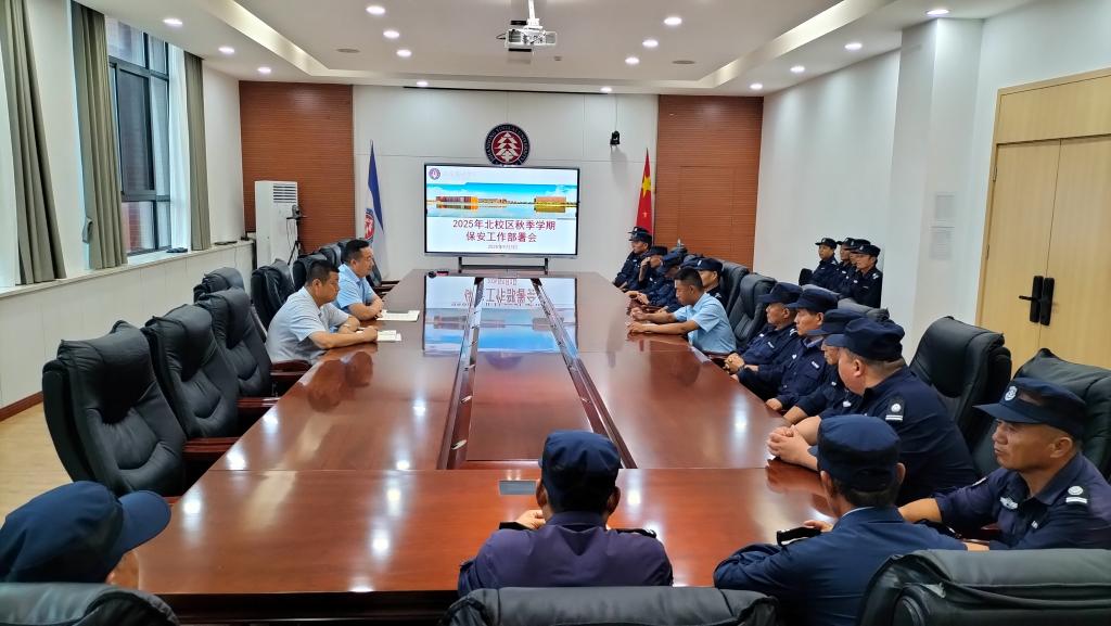筑牢校园安全网,护航育人新征程。为进一步强化校园安全保卫工作,9月3日下午,北校区综合办公室在图书馆楼211会议室组织召开2025年秋季学期保安工作部署会议,北校区综合办公室主任高奎,安保干部、保安公司项目经理及全体保安参加会议。会议由韩长江主持。