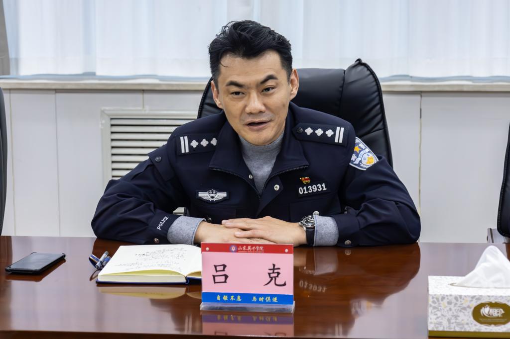 随后,吕克教导员对学校安全管理工作给予高度评价与充分肯定,并对学校长期以来对“平安校园”建设工作的支持和配合表示感谢。他重点分析了当前高校面临的新风险点与不稳定因素,建议学校进一步加强风险排查与监测预警,尤其是电信网络诈骗防范教育工作,以实际行动为打击防范电信网络诈骗犯罪,维护校园和谐稳定出做应有的贡献。同时,吕教导员还提醒要持续推进警校协同,共同做好矛盾纠纷排查化解、涉校安全隐患预警处置、校园周边环境综合治理,健全齐抓共管联动机制,切实维护校园及周边安全稳定,共同为平安校园建设贡献力量。