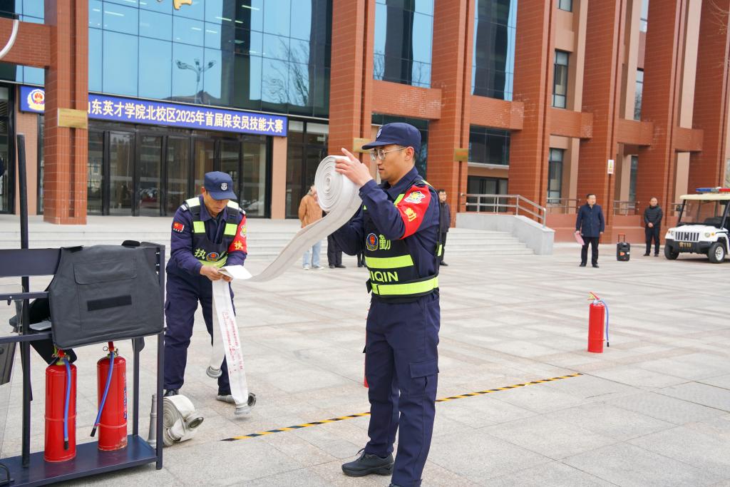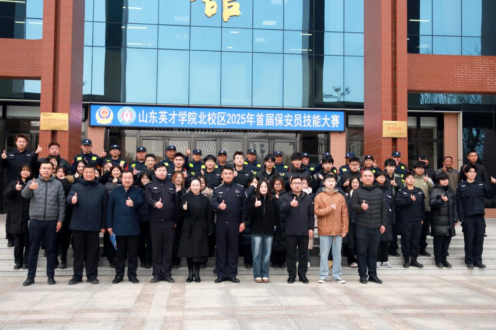 为全面提升安保队伍的专业素养、应急处突能力和综合服务水平,打造一支“政治坚定、业务精湛、作风优良、纪律严明”的校园安保铁军,持续强化安保队伍建设,切实守护师生人身财产安全,12 月11 日上午,北校区首届保安员技能大赛在图书馆东广场顺利举办。起步区公安分局崔寨派出所教导员吕克,责任区驻校民警解传捷,豆源和(山东)食品科技有限公司经理郭亚平,学校纪委书记、副校长李晓玲,北校区综合办公室副主任张中凯,安保干部和全体保安人员参加了此次大赛。大赛由北校区综合办公室主任高奎主持。