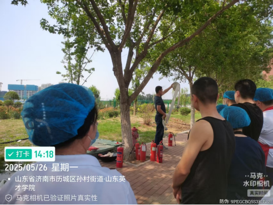 为增强学校餐厅员工的消防安全意识,提升火灾应急处置能力,2025年5月26日,后勤处组织七星园餐厅全体员工以及其他餐厅新入职员工,开展了一场全面深入的消防培训及演练实操活动。此次旨在通过专业指导系统提升餐饮服务人员的消防应急技能,为保障校园师生用餐安全构筑坚实屏障。