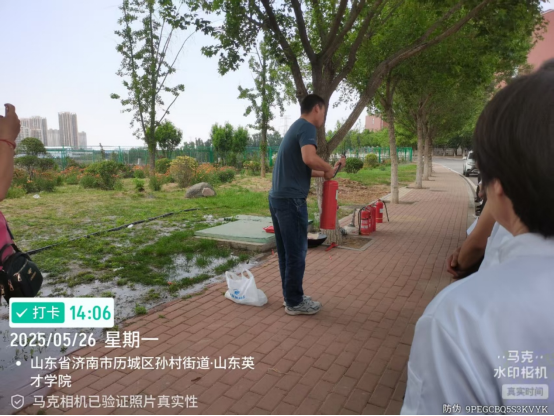理论学习后,紧张有序的实操演练随即展开。在专业人员指导下,员工们分组练习使用干粉灭火器扑灭模拟火源。从拔销、握管、瞄准到压把喷射,每一步都力求规范。新员工在老员工“传帮带”下克服初次操作的紧张,迅速掌握了动作要领。