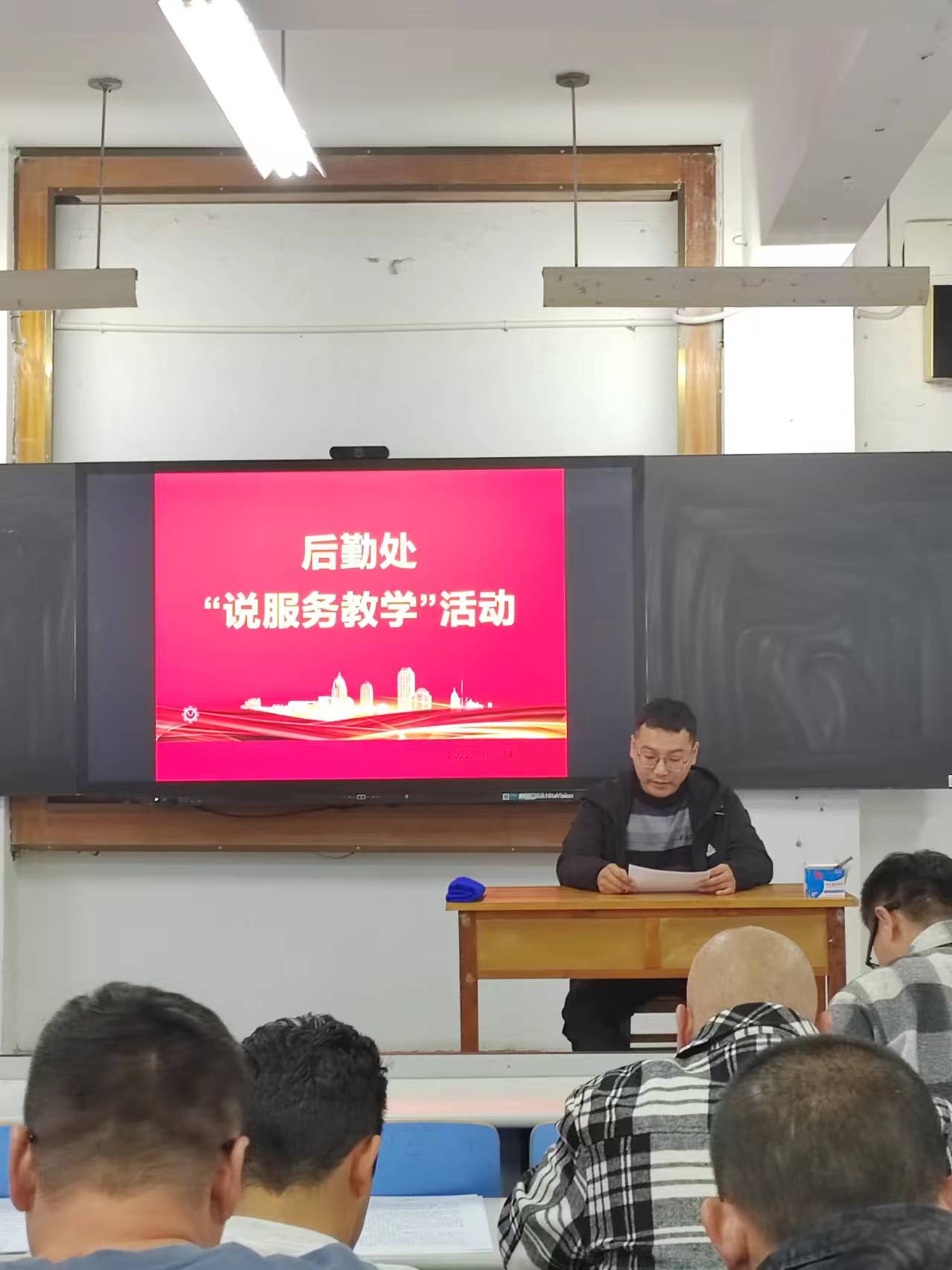 为扎实推进学校审核评估准备工作,健全教学质量保障体系,提高教育教学管理水平,全面提升人才培养质量,根据学校工作安排,后勤处全体教职工于2022年10月14日下午13点30分在办公楼1001会议室举行后勤处“说服务教学”活动。