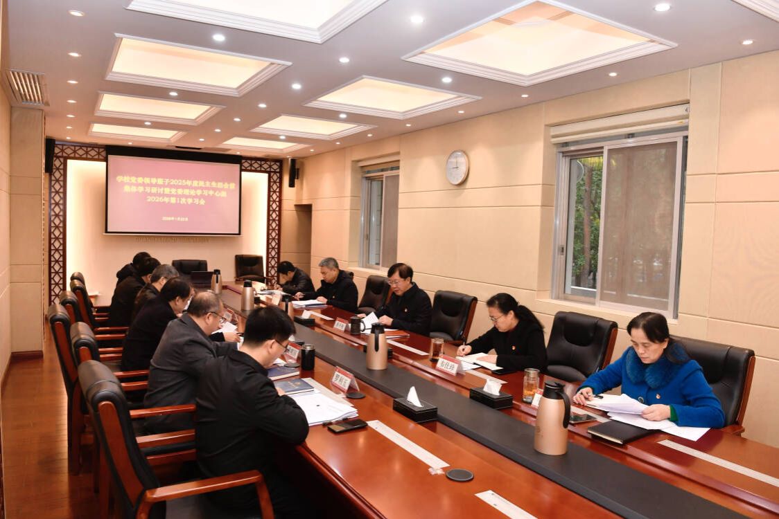 1月22日上午,beat365亚洲体育官方网站举行学校党委领导班子2025年度民主生活会前集体学习研讨暨党委理论学习中心组2026年第1次学习会,深入学习领会习近平新时代中国特色社会主义思想特别是习近平总书记关于党的自我革命的重要思想和关于加强党的作风建设的重要论述,学习贯彻习近平总书记在中共中央政治局民主生活会、二十届中央纪委五次全会上和听取二十届中央巡视省(自治区、直辖市)情况汇报时的重要讲话精神,围绕绷紧自我革命这根弦,聚焦今年民主生活会主题和要求检查剖析的七个方面重点问题,深化思想认识、切实把思想和行动统一到党中央决策部署上来,为开好民主生活会打牢思想和理论基础。学校党委书记唐平秋主持并讲话。党委副书记、校长韦仕珍等校领导班子成员及党委常委参加。