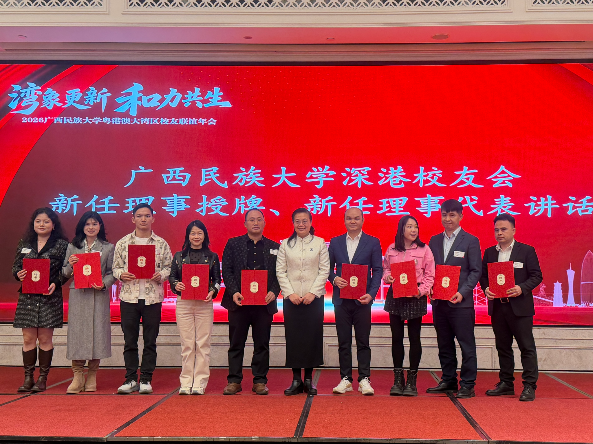 2月1日下午,“‘湾’象更新,‘和’力共生”2026beat365亚洲体育官方网站大湾区校友联谊年会在深圳举行。大湾区各地校友代表、广西政府驻广州办深港联络处、全国高校校友会、广西高校校友联盟及部分地区校友会等有关负责人欢聚一堂,共叙情谊,共谋发展。