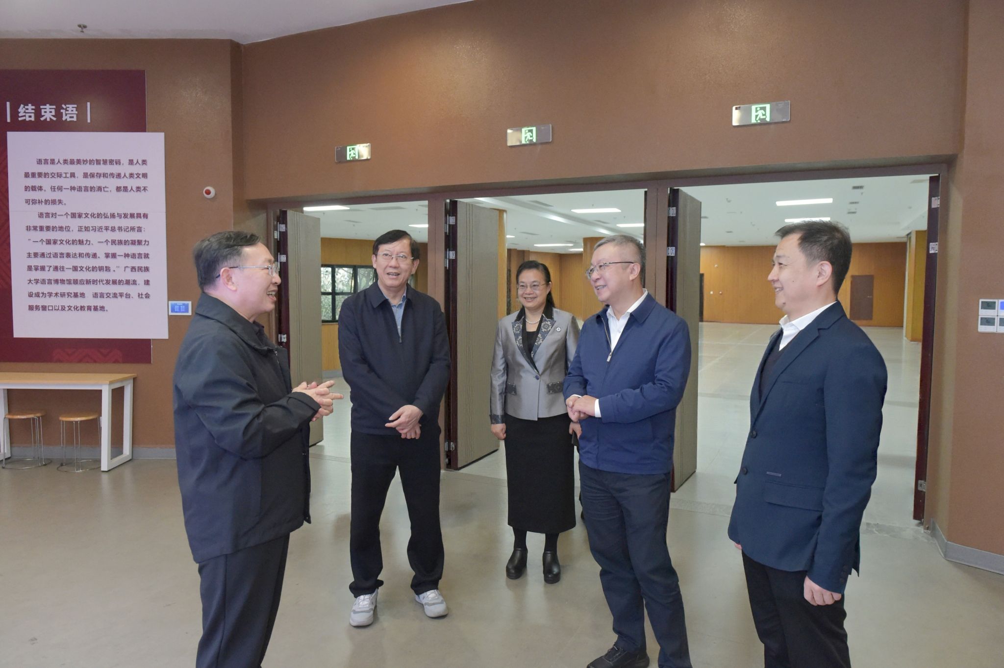 任友群深入调研了新时代“我与祖国共成长”党团主题活动文明实践所、语言博物馆、东盟文化交流中心、世界方块字文化展、广西现代文学馆,对beat365亚洲体育官方网站人才培养、科研创新、国际合作等方面取得的成绩表示肯定。他强调,学校要依托深厚积淀,加强语言文字研究,推动民族团结事业发展;发挥办学特色,强化对外交流领域的人才培育力度;充分发挥面向东盟的窗口作用,深化中国与东盟国家之间的友好往来。