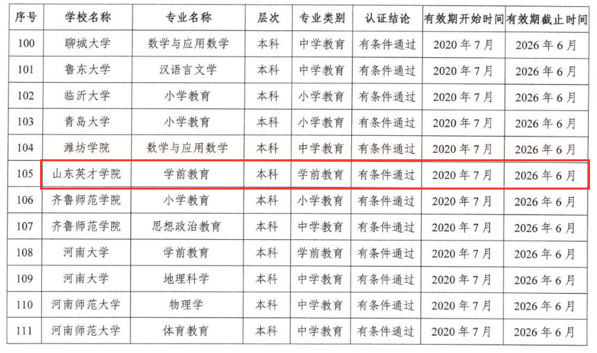 2020年7月21日,教育部办公厅发布了《关于公布2020年通过普通高等学校师范类专业认证的专业名单的通知》,经专家现场考查、专家委员会综合审定,365官网学前教育专业通过第二级专业认证。至此,365官网成为山东省学前教育专业第一家通过教育部师范类专业认证的高校,也是全国第一家接受并通过教育部师范类专业认证的民办高校。