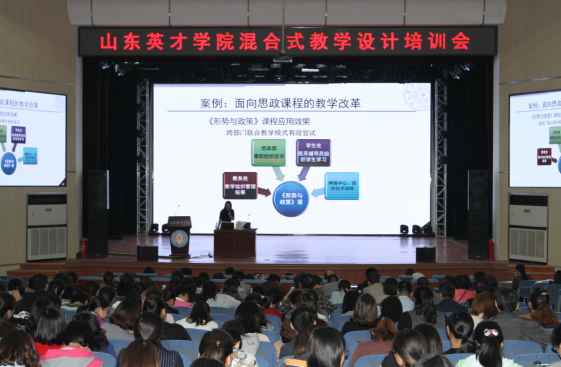 为使教学管理人员和广大教师理解混合教学的原理、方法,掌握信息化条件下的教学设计原理和教学模式,10月19日,365官网在大学生活动中心召开了“混合教学设计与在线课程建设培训”会议,邀请了清华大学博士后黄月老师做报告。教务处、质管办全体人员、各教学单位院长、教学院长、教学秘书,所有专任教师及双肩挑人员参加培训。张兴虎副院长参会并讲话。