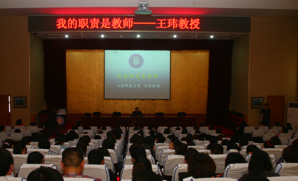 为提高我院教师的整体职业素养和教学水平,于2012年4月25日下午两点,在学术报告厅举办了教师培训讲座,特别邀请了山东师范大学国家级教学名师王玮教师来校做报告。教务处王处长、建工学院徐进院长、计算机学院赵红艳院长、外国语学院樊家进院长等领导以及我院全体教师参加了此次讲座。