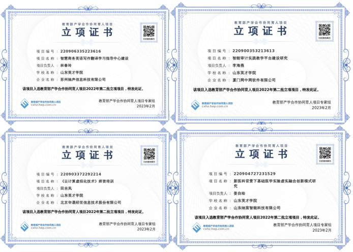 近日,教育部公布了2022年第二批产学合作协同育人项目立项名单,山东英才学院智慧商务英语写作翻译学习指导中心建设、智能审计实践教学平台建设研究、《云计算虚拟化技术》师资培训、新医科背景下基础医学实验虚实融合创新模式研究项目获得批准立项。