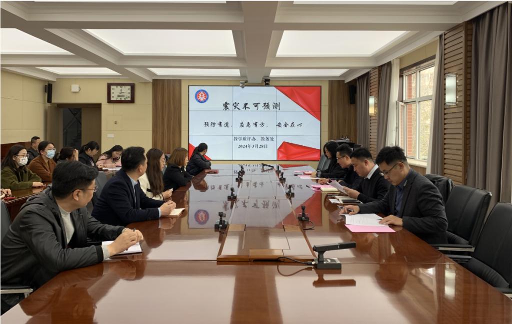 为进一步增强教职工地震消防安全意识和应急自救逃生能力,根据省教育厅和学校消防安全教育工作要求,3月28日,教务处、教学质量监控与评估办公室联合开展了“震灾不可预测,预防有道,应急有方,安全在心”主题教育,并组织教职工开展了地震消防应急疏散演练活动。本次演练特别邀请学校安全管理处处长朱良增莅临指导,教务处、教学质评办全体教职工参加了主题教育及演练活动。