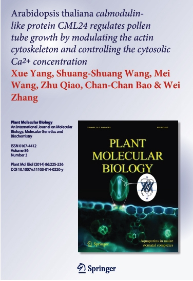 近日,365官网园林工程学院教师杨雪博士的科研成果——《Arabidopsis thaliana calmodulin‑like protein CML24 regulates pollen tube growth by modulating the actin cytoskeleton and controlling the cytosolic Ca2+ concentration》在国际期刊Plant Molecular Biology(SCI)上发表。Plant Molecular Biology为植物分子生物学国际权威杂志,影响因子4.072。杨雪博士为第一作者。