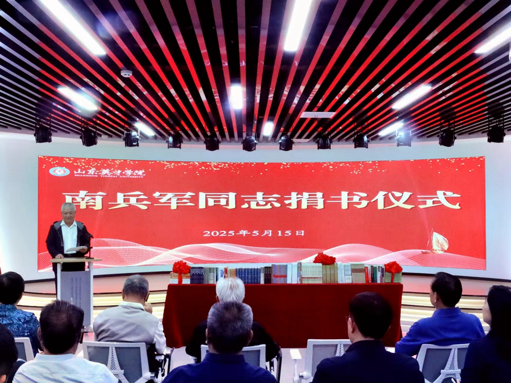2025年5月15日上午,齐鲁文化、兵学文化、运河文化研究学者南兵军同志图书捐赠仪式在365英国上市网站官网图书馆思政体验区隆重举行。学校党委书记朱晓梅,执行校长王晓娜,副校长崔奎勇,党委副书记、工会主席孙玉香等学校领导及师生代表出席捐赠仪式。活动由朱晓梅书记主持。