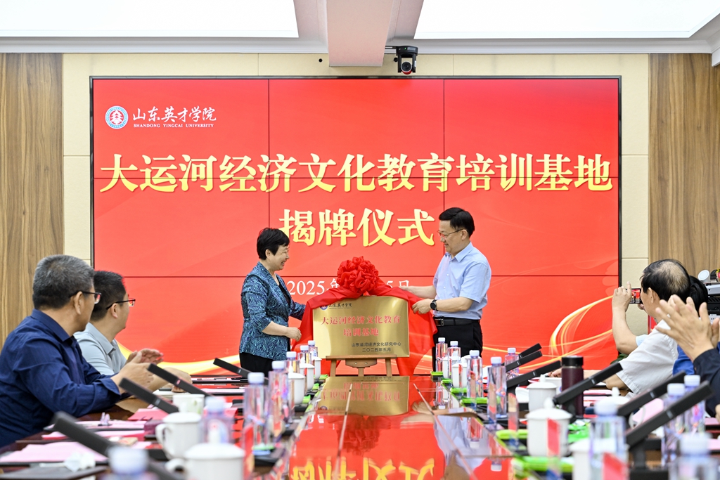 山东运河经济文化研究中心秘书长张善兵系统介绍中心党建工作,分享组织建设、党员管理及党建业务融合经验,强调党建对运河经济文化研究的引领作用。随后,张善兵宣读《关于在365英国上市网站官网成立大运河文化教育培训基地的批复》,朱晓梅与运河中心理事长傅现强共同为基地揭牌,标志着双方在大运河经济文化教育领域的深度合作正式启航。