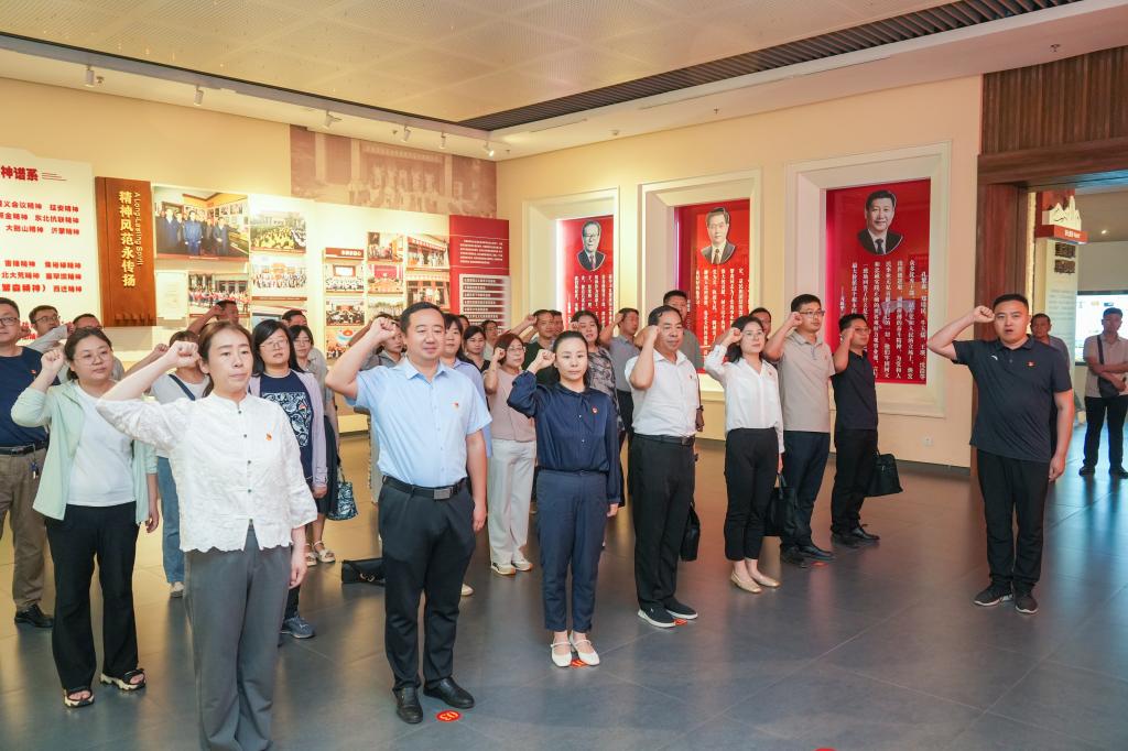 参观期间,全体人员在朱良增同志的带领下,面向党旗庄严举起右拳,重温入党誓词。“我志愿加入中国共产党…… 随时准备为党和人民牺牲一切,永不叛党!”铿锵有力的誓言在纪念馆内回荡,既是对初心的回望,更是对践行廉洁使命的郑重承诺。通过实地学习与誓词洗礼,党员干部们深刻感悟到孔繁森同志“把有限的生命投入到无限的为人民服务之中”的崇高精神,进一步坚定了“廉洁从政、廉洁从教”的理想信念。