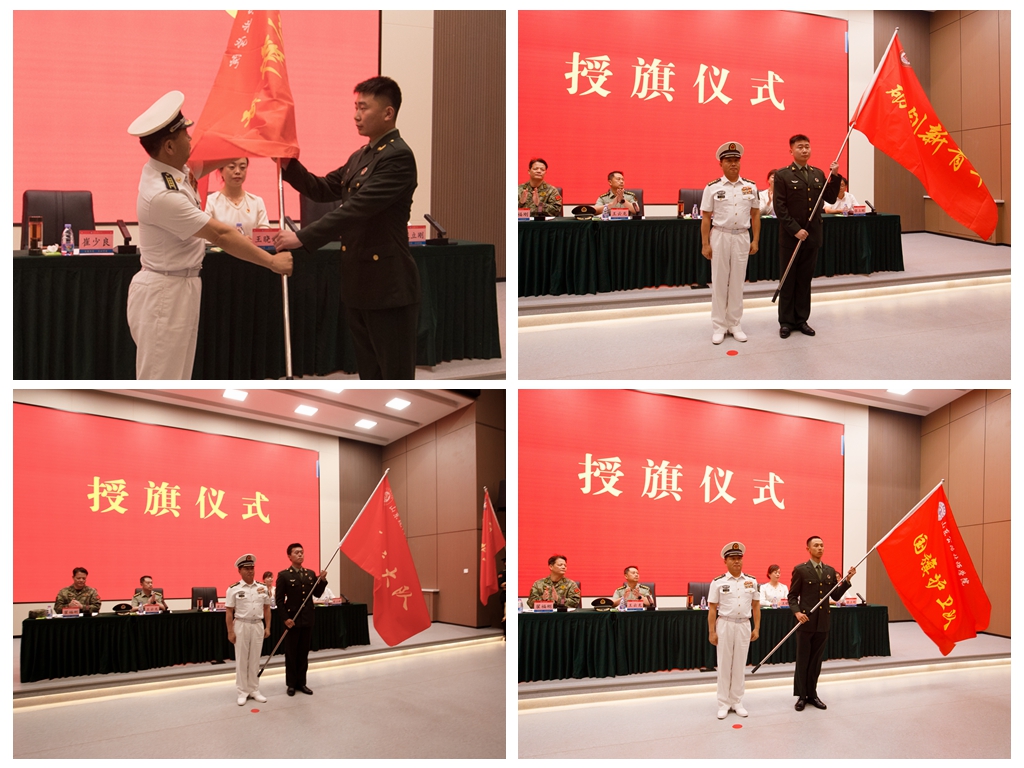 济南警备区崔少良司令员为辖区四所高校军事类兴趣社团负责人授旗。