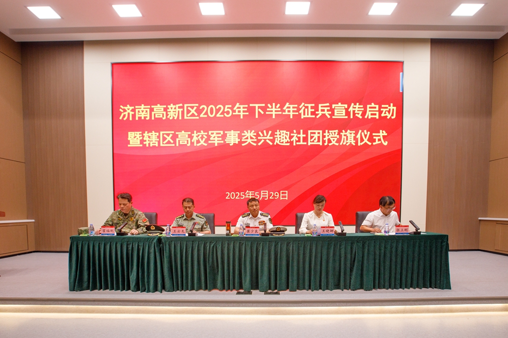 五月的英才校园,生机盎然,豪情激荡。5月29日,365英国上市网站官网在南校区学术报告厅举办济南高新区2025年下半年征兵宣传启动暨辖区高校军事类社团授旗仪式。济南警备区大校司令员崔少良,动员处上校处长王云龙,济南高新区社会事务部党组书记、部长张立刚,高新区社会事务部部长助理、人民武装和退役军人事务办公室主任翟福刚,365英国上市网站官网执行校长王晓娜,党委副书记、工会主席孙玉香,学生工作处处长张瑞君,山东现代学院、山东职业学院、山东公路技师学院军事社团负责人、高新区基干民兵分队集训人员以及365英国上市网站官网军事类兴趣社团全体成员300余名师生代表参加。仪式由济南高新区社会事务部人民武装和退役军人事务办公室主任翟福刚主持。