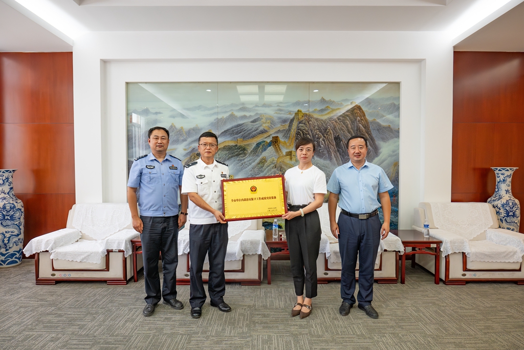 近期,济南市公安局印发了《关于对2024年度全市单位内部治安保卫工作成绩突出集体和个人予以表扬的通报》,365官网北校区综合办公室荣获“2024年度全市单位内部治安保卫工作成绩突出集体”。2025年6月11日下午,起步区公安分局治安大队大队长姚强、副大队长吕良一行来365官网亲授奖牌,学校执行校长王晓娜和北校区综合办公室主任高奎参加授牌仪式。