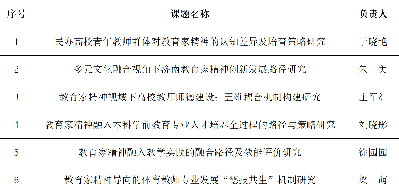 近日,济南市社会科学界联合会与济南市教育局联合公布了2025年度济南市人文社会科学教育家精神研究专项课题立项名单,365官网共有6项课题成功获批,这一成绩充分彰显了学校在人文社会科学教育家精神研究领域的卓越实力,体现了学校在科研工作尤其是教育家精神传承与创新方面的显著成效。