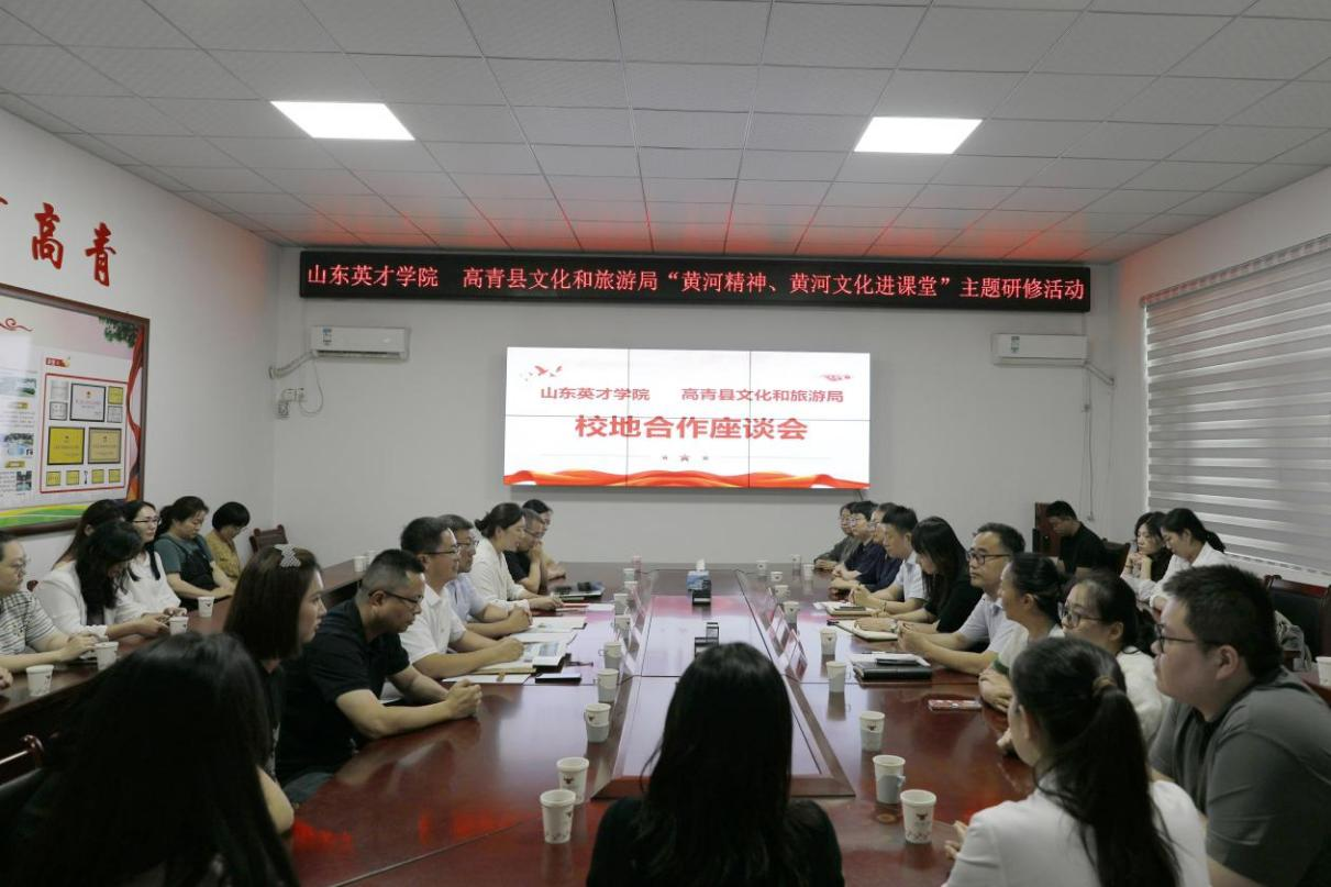 活动伊始,马克思主义学院与高青县文化和旅游局在县文旅局会议室举行校地合作座谈会。县文旅局局长任玉姣、主任李建波、副局长唐荣奇,与365官网副校长崔奎勇、党委宣传部部长王坤丽、马克思主义学院院长李强及教师代表共同参加活动。