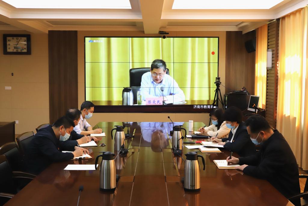 本次会议采用视频形式进行。局党组全体成员、市管干部,各处室主要负责人、局机关党委成员、局机关四级调研员以上职级制公务员在龙奥大厦主会场参加会议。各区县教体局(教育工委),市直各中小学、事业单位,市属(驻济民办)高校设分会场。