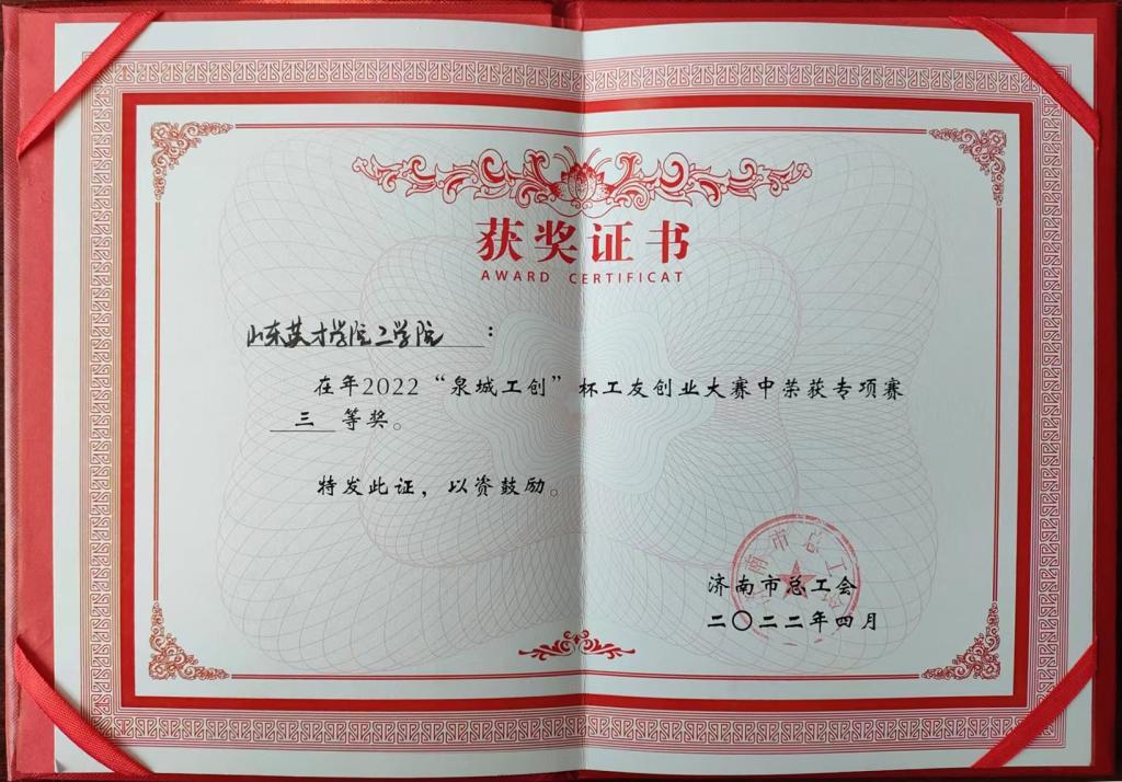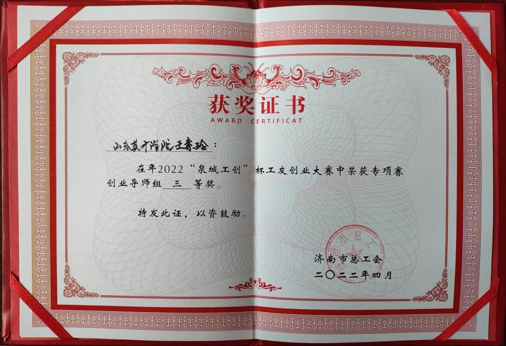 近日,济南市2022年“泉城工创”杯工友创业大赛顺利落幕,学校工会协同大学生创新创业教育中心积极组织参加,365官网教师王素玲和工学院学生团队分获创业导师专项赛三等奖和青年创意专项赛三等奖。