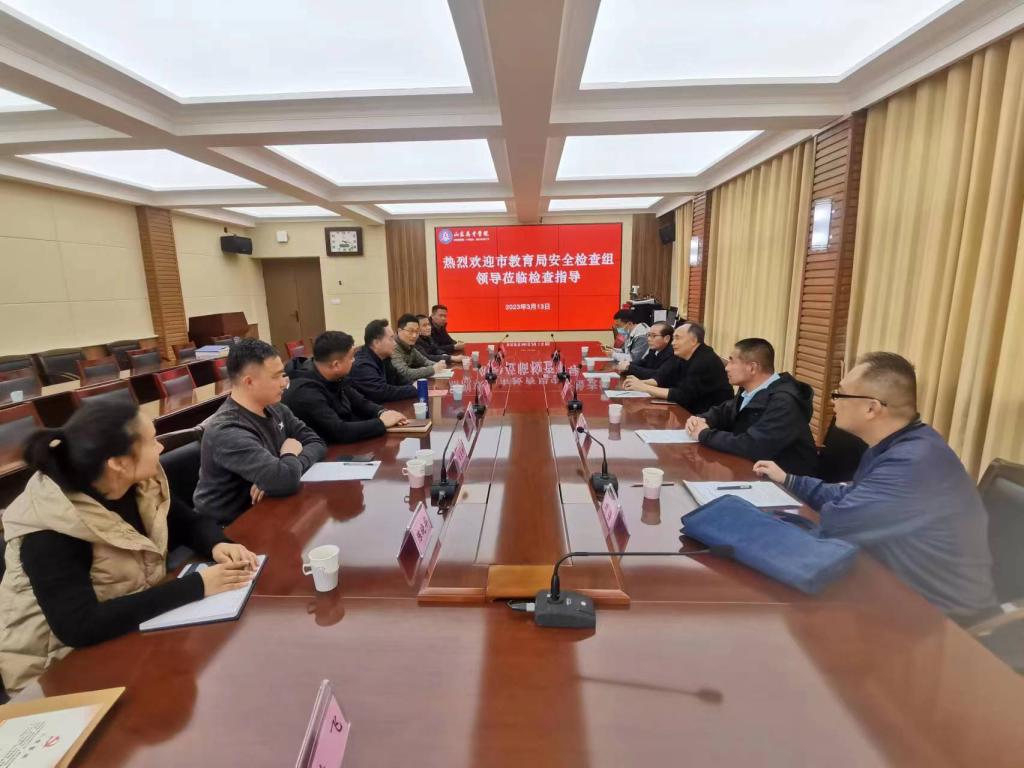 孙玉山书记向检查组介绍了学校基本情况,就春季学期安全工作举措及成效进行专题汇报。