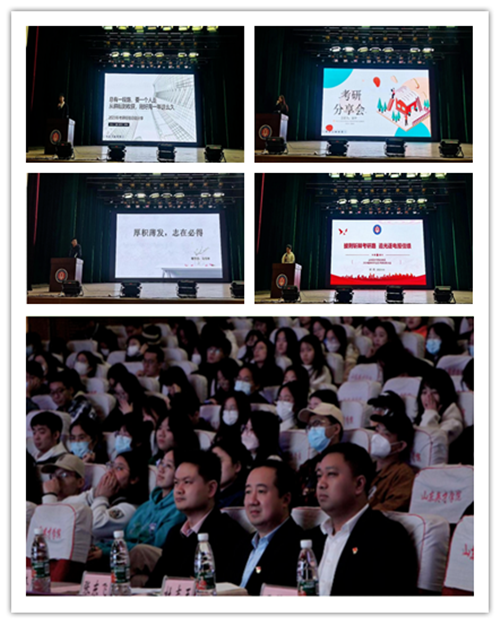 会议伊始,往届考研成功毕业生对在校学生送来了考研寄语,就备考时如何做到科学定位、如何合理选择学校、专业以及复习资料、如何提升做题的高效性等问题为同学们提出合理化建议。
