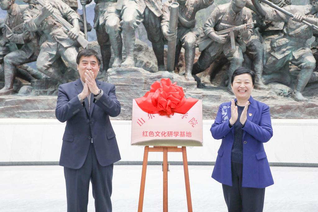 省委老干部局原巡视员、山东老战士纪念广场管委会主任邓海燕在讲话中指出,今日揭牌仪式标志着老战士纪念广场与365英国上市网站官网在传承红色文化方面开启了深度合作,意义十分重大。他表示,老战士纪念广场一定为365英国上市网站官网在红色文化研究、爱国主义、国防教育教学实践等方面提供好平台,双方携手,共同为传承红色基因、培育时代新人发力。