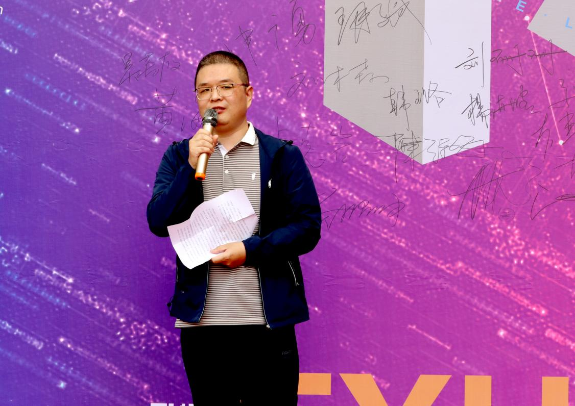 设计学院优秀校友代表,济南正泰装饰集团总经理、设计总监张保松发言。他表示很高兴能够参加设计学院2023年毕业设计作品汇报展,十五年的时间,他见证了设计学院由小变大、由弱变强和凝心聚力的过程。作为设计学院的往届毕业生,他倍感荣幸。毕业后他没有忘记母校的培育,在创业就业方面积极为母校创设条件,提供就业岗位,促进创新创业能力的培训与提升,成为了母校创新创业的“校友典范”。最后,张保松同学对现场的学弟学妹们寄予了诚挚祝福,祝愿他们踏入社会征程后,充分发挥自身的价值,创造出属于自己的一番事业。
