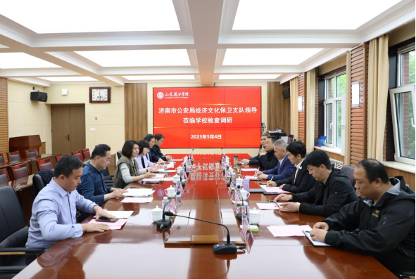 5月4日上午,济南市公安局经济文化保卫支队支队长朱容海、政委李晓薇、副支队长隋健、秘书科科长吴百洋,三大队大队长于平、一级警长孙磊等一行六人来校检查调研,实地查看了图书馆党建思政中心、大学生服务中心、心理咨询室、警务室。学校校长刘珊珊、副书记孙玉香、纪委书记孙玉山,办公室主任韩帮峰、安全管理处朱良增、学生工作处副处长车海红陪同。