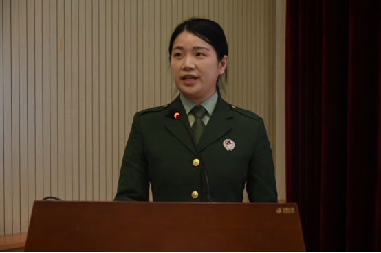 穆永厚军士长以《厚植爱国情怀 立志成才报国》为题作报告,从入伍初心到从军经历,结合国防对一个国家的重要性,强调国防是每一位国民的义务与责任,青年大学生更应热爱国防、关注国防,努力学习专业知识,积极投身国防建设实践,为国防建设贡献青春力量。