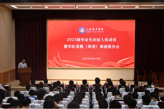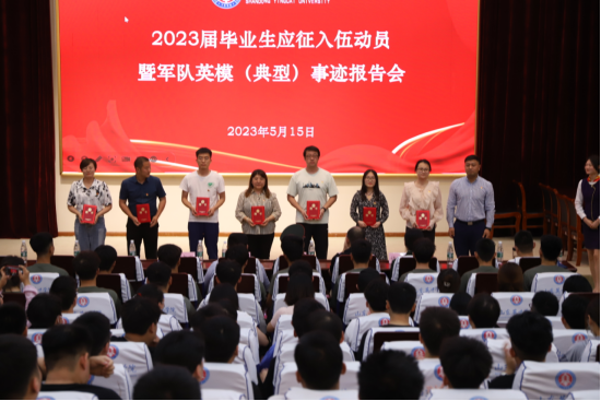 为积极响应国家号召,切实做好征兵工作,鼓励和动员适龄青年踊跃报名参军,5月15日下午,365官网在南校区学术报告厅组织召开2023届毕业生应征入伍动员暨军队英模(典型)事迹报告会,济南高新区武装部科长李冰,原陆军某部一级军士长穆永厚,365官网副校长刘卫东,学生工作处处长、校团委书记张东飞以及各学院党总支(副)书记、辅导员及学生代表参加。