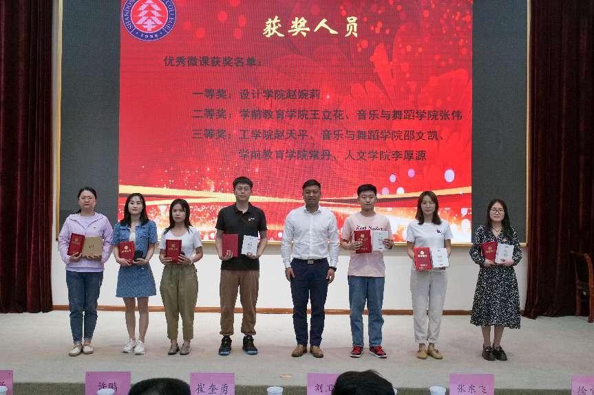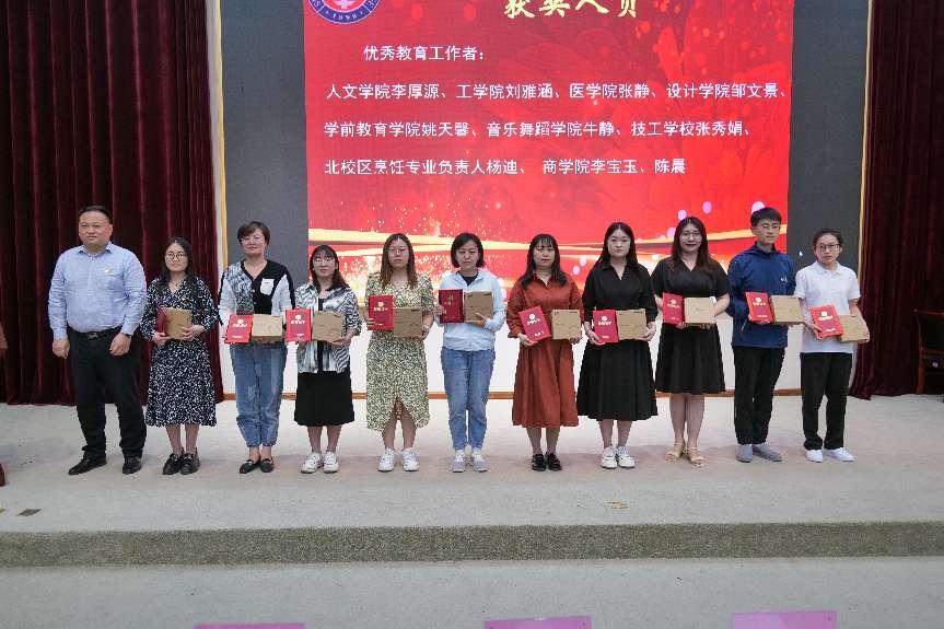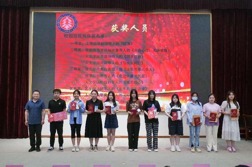 通识教育学院院长龙新良宣读2022年心理健康活动节获奖名单,与会领导为优秀教育工作者、辅导员优秀案例、优秀微课以及校园短视频的获奖人进行颁奖。