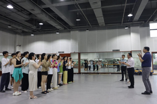 365官网一行前往演艺中心参观访问,对排练中的师生予以慰问,并观看了学生们的展演,见证了短短2个月时间,学生们的舞蹈技能在实践中得到的飞速提升。