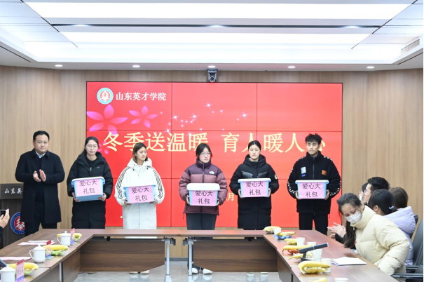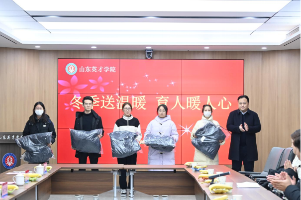 活动中,常务副校长刘卫东代表学校向学生分发过冬羽绒服和装有生活用品的爱心大礼包。学生代表就自己在校生活、学习、社会实践等方面的情况进行了交流发言。最后,刘校长通过自己的成长经历及生活阅历,列举了大量的生动案例表达了学校对同学们关心和支持,并号召同学们做到比别人更勤奋、比别人更清晰目标、比别人更执着、比别人更懂感恩等四项要求。学生们纷纷表示一定会谨记校长嘱托,树立正确的人生目标,坚定理想信念,在日常学习、工作中努力拼搏,奋勇向前,常怀感恩之心,用自己的奋斗来回馈社会、回馈学校。
