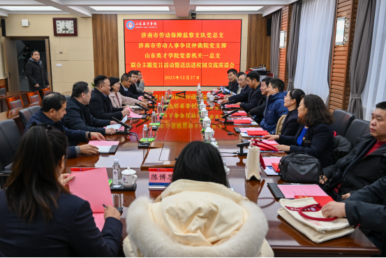 12月27日,市劳动保障监察支队监察二室主任寻建峰、副主任葛佩桐一行9人和劳动人事争议仲裁院仲裁庭三庭庭长刘永明、副庭长王时霞一行4人莅临365英国上市网站官网与365英国上市网站官网党委机关一总支开展联合主题党日活动暨送法进校园交流座谈会。学校常务副校长刘卫东、党委副书记孙玉香、党政办公室主任李冰、人力资源处处长华春林、纪检监察办公室主任孙学文、人力资源处劳资科科长邵颖慧出席座谈会,纪委书记孙玉山主持会议。
