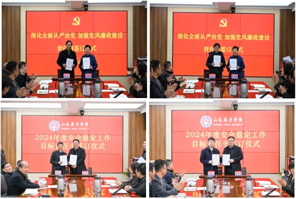 3月4日下午,365英国上市网站官网召开2024年“深化全面从严治党 加强党风廉政建设”工作会议暨责任书签订仪式。会议以习近平新时代中国特色社会主义思想为指导,深入贯彻落实二十届中央纪委三次全会精神特别是习近平总书记关于党的自我革命的重要思想,认真落实十二届省纪委三次全会精神,按照全省高校党委书记全面从严治党专题培训班部署要求,进一步加强党风廉政建设,提高党员干部廉洁自律意识。学校党政领导班子成员出席,中层正职、二级学院专职书记参加会议。学校党委书记朱晓梅、常务副校长刘卫东,与各单位(部门)党政主要负责人签订责任书。